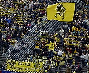 Pünktlich zum 20 Jährigen Fan Club bestehen war es soweit und über dem Block N wehte der Kartoffelkäfer auf unserer neuen Fahne. Auch der restliche Block wurde in mühsamer Kleinarbeit in unsere Farben getaucht und alle haben sich besonders schick gemacht, so auch unser Sprecher Robert und unser Gründungsvater Thomas. Besonders schön war es dann natürlich, dass unser Jubiläum von "The Voice " Robert Moonen erwähnt wurde .