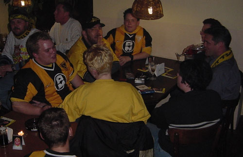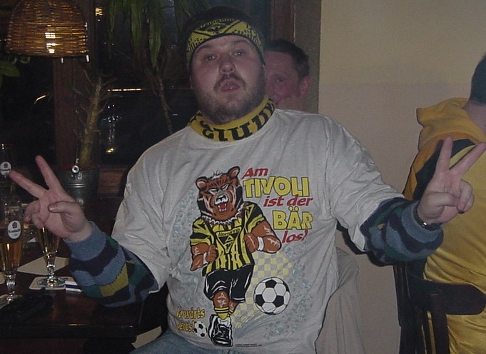 Nach einigen Gesangseinlagen und reichlich Bier kam was kommen musste: einige userer Mitglieder zeigten ihr wahres Gesicht. Herr Raabe ,der sonst nie mit Schal gesehen wird, mutierte zum Bär und Herr Wiechert zeigte uns seine wahre Leidenschaft den FC ST Pauli. Zur Morgendämmerung gingen dann die letzten nach Hause und wir freuen uns auf das nächste grosse Fest in Schwarz und Gelb .